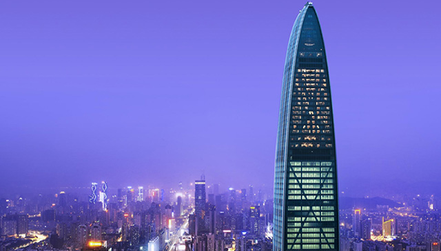 京基100(KK100),原名京基金融中心(KingKey Financial Center),樓高441.8米,共100層,由來自英國的兩大國際著名建筑設計公司—TFP和ARUP聯合設計。京基100大廈共100層,其中1-4層為五星級酒店式大堂,5層為國際會議中心,第6-72層為甲級寫字樓,為可容納3萬多人同時辦公無柱空間,標準層面積為2400-2700平方米,標準層高4.2米。第75-100層為世界頂級酒店管理公司——喜達屋集團旗下的超五星級瑞吉酒店——瑞吉酒店,擁有270間豪華客房。
